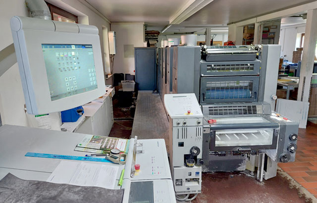 Mit unseren Heidelberger Druckmaschinen mit Computertechnik (CPC) drucken wir Formate von der Visitenkarte bis 72 x 102 cm im 1- bis 5-Farben-Druck, Veredelung während des Drucks, z. B. Lackierung, ist möglich.